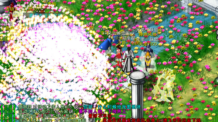 入场后,活动现场里有个叫烟火商的NPC,所有参加活动的玩家可以到该处领取一个令牌,以防掉线等意外情况发生时,玩家可以凭借此令牌重新进场。