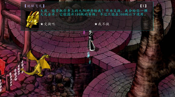 选择无意中得到,地狱飞龙就提出用一个飞龙月饼相换的要求,同意则得到飞龙月饼。