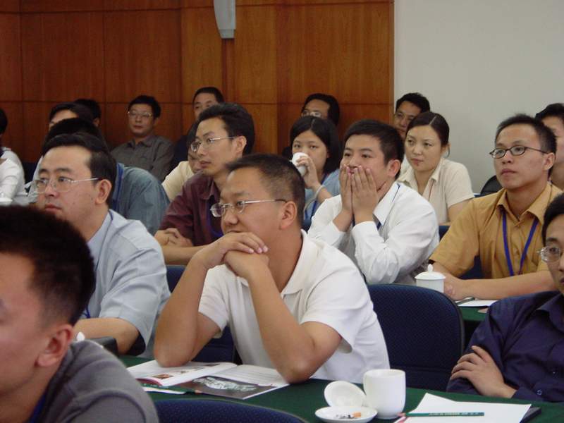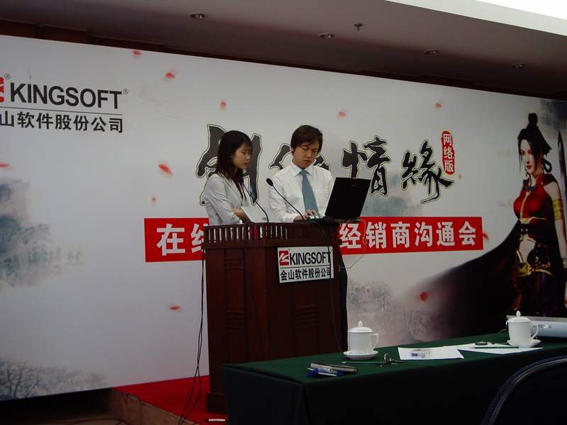 沟通会上金山数字娱乐科技有限公司总经理介绍了一下剑网运营方面的问题,从服务器配置到客户服务,分别作了详实的描述,让各位经销商首先放下了一半的心,然后金山公司副总裁给大家分析了一下目前网络游戏市场的形势,介绍了剑网在市场营销方面的超豪华计划,大伙就一下子都放心了,最后,金山公司总裁雷军极为震撼的总结,给所有的经销商注入了一针强心剂,大家对于金山公司合作充满信心。之后在沟通会之后的单对单面对面沟通上,各位经销商介绍了一下当地的市场情况,详细列出了他们的推广****我们受教良多。