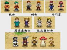 至于在游戏中登场的人物职业一开始有五种,每种职业都有完全不同的属性与特技,而且在游戏进行时与战斗过程中都会有不同的发展,之后随着等级提升也能进行转职并发展出更多的职业变化,至于这一开始五种职业分别是:
