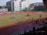 开幕式的精彩表演由武术系同学的舞龙舞狮率先拉开:双龙上下穿梭,形态飘逸;雄狮生动活泼,憨态可掬,走钢丝,腾越,一个个高难度的动作,赢得了场下同学的阵阵喝彩。他们以自己扎实的基本功和娴熟的技巧,为本次盛会献上了一份厚礼。接下来的是大批MM的艺术体操表演和集体拉丁舞表演:姣好健康的身段、充满活力的青春气息、整齐划一的舞姿……大批翩翩起舞的美女走到哪里都是焦点!