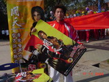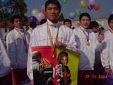 《 开天》的展台就在运动场的入口处,刚刚摆好即被同学们围得水泄不通。由于大家对奥美的游戏都非常的熟悉和认可,我们的《开天》自然而然的引起了大家的极大兴趣,海报等宣传品在第一时间就被一抢而空。一位2000年全国游泳锦标赛的冠军队员,向工作人员表示自己是个狂热的游戏迷,不但对奥美的单机游戏了如指掌,在“开天世界”中也已奋斗了很久,并主动要求与《开天》合影。