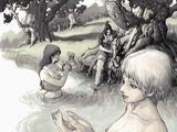 “很久以前大陆有3位神, 拉菲斯, 埃希斯, 库约斯, 他们把美丽当作最崇高的东西, 而且都是是热爱和平的神。把科洛斯大陆做成手的形状, 也是想把他们的美丽分享给人类。