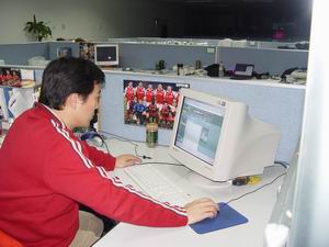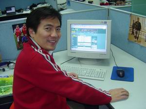 12月18日下午,乘着北京冬日里难得的阳光,健翔这位《足球经理在线》神秘玩家应邀造访了新大陆网络科技有限公司,与《足球经理在线》运营团队共同探讨游戏。公司里值班的同事,都为他的到来小小轰动了一下,健翔也微笑着与我们打招呼。坐定之后,健翔打开一台电脑,向我们展示了他使用的球队“☆PLAYGM☆阿积士”以及球员、战术的情况。健翔用幽默风趣的语言介绍了手下爱将,并用比较专业的真实足球的战术思路阐述了他的打法。如同一个普通的玩家,说起自己的球队,健翔也是满脸笑容,显然球队在联赛中的出色战绩,让他十分满意;也许现实足球中不能得到的乐趣,在《足球经理在线》中得到了满足。不愧是足球专业知识深厚的专业人士,在球员使用方面的经验之谈,也让我等汗颜。从始至终,言谈甚欢,气氛融洽,就好象与老朋友聊天一样。