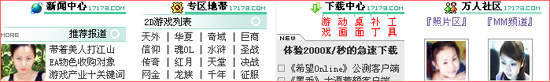 ・ 游戏万人社区:包括万人论坛、俱乐部,17173Mm频道,照片区。其中还有面对网吧的网吧联盟,直接连接为网吧业主提供网吧自建站的服务。