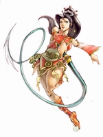 此女为风尘三侠之一,以女流之身而修武入道,亦侠亦仙,属传说中的人物。其性情刁钻、武艺高强,见不得一点不平事。手中长鞭有如龙蛇,矫灵异常,实为无知宵小的克星。