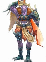 天庭诞生之前就存在的混世魔王,因屡屡扰乱天地和谐曾被元始天尊封印了九万九千九百年。形体极为高大修长,身着亮银魔甲,手执六鬼锁元刀,加上冷竣的眼神,给人一种不寒而栗的感觉。