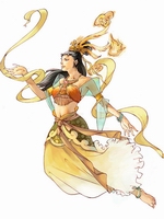 玉皇大帝之女,娇柔之状,我见尤怜。因自幼挚爱纺织,遂采白云为布、积月光为丝、以彩虹染色织就霓裳。难以想象一位那么娟秀的女子,一双如此柔弱的纤手竟能释放出那么强大的法术。