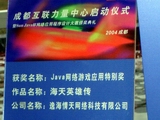 春回大地,万物复舒!春天的脚步刚刚迈进大家的生活,《海天英雄传》也收到了新春的第一份大礼!由全球知名的IT巨头Sun计算机系统(中国)有限公司(以下简称Sun公司)举办的“Sun JAVA杯网络应用程序设计大赛”的最终结果已经出炉,并于2月10日在成都市高新区举办了规模盛大的结果揭晓与颁奖仪式,作为全国唯一一款入围决赛的网络游戏,《海天英雄传》获得了该大赛的最高奖项 “网络游戏应用特别奖”,由四川省信息产业厅高层官员为《海天英雄传》颁发了奖金及奖状。