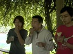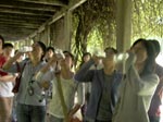线上活动完毕,玩家在电子科技大学的花园进行了娱乐活动。吃发面、喝血瓶、两人三脚接力等等,娱乐游戏一个比一个精彩,玩家的笑声回荡在校园中。大家来跳过竿舞这个游戏使活动气氛达到顶点。