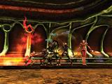 画面的右上角为“气槽”,不断使用攻击可以存储一定的气量(与《最终幻想11》的系统相似),当气量达到一定值后便可以使出强力的特殊技,特殊技的攻击力非常高,具有瞬间秒怪的特效。在游戏中,数字的大小以及信息对话框的字体都设计得很体贴,不同的信息将会以不同颜色的文字来显示,统一的符号以及系统菜单,让玩家可以很清晰地了解每一个栏目中的内容。游戏中还有一个让玩家觉得很贴心的是设计,就是在画面左上角会显示出玩家与目标对象强弱的Consider功能的圆型符号。另外,在画面的左下角还有一个表示了怪物所在位置的“雷达”系统。