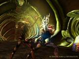 攻击系统:据称这款游戏将不会采用自动攻击的系统,也就是说每一下的攻击动作都是由玩家进行操作的,由于加入了攻击判断的格斗元素,也就是说玩家可以使出不同的攻击动作,以及对怪物攻击作出回避等高难度技巧,所以估计这样的战斗系统将会在战斗时带来一种全新的格斗感觉。另外,与以往MMORPG中的系统有很大区别的是,这款游戏舍弃了普通攻击这一设定,所有的攻击将由技能构成,估计连续技也是由技能+技能这样使出的。