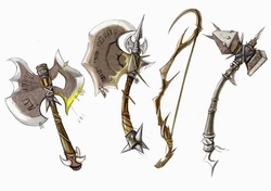 该战斧使用之后会留下很深的伤痕,所以设计一定要给人一种锋利的感觉。