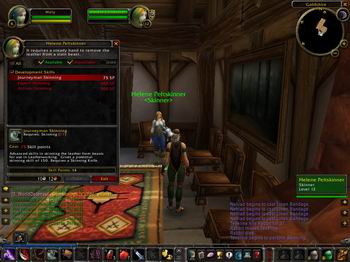 先要找到学习技能的地方..看地图.圆点处就是学习剥皮与制皮的导师所在地 进去后就见到我们可爱的MM导师啦