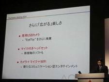 SCE 预定年底推出的 PSP 掌上型主机则已正式公布将具备耳机麦克风的输入功能,也实际展示了以语音方式输入的实时翻译软件《TALKMAN》,并透露了将可能推出结合了摄影机、耳机麦克风与无线网络的新一代沟通娱乐方式。