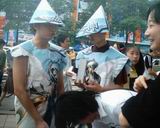 办事处的两位帅哥穿上由《 绝对女神》海报做成的衣服和帽子出现在活动中,强烈吸引了路人的目光,回头率300%,加上工作人员对游戏的介绍,很多人争相索要光盘和海报。原计划在两个小时发放1000张海报和900张光盘。没想到人们的热情度那么高,在不到1个小时的时间所有的海报和光盘全发放完了。