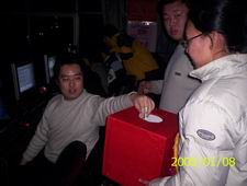 “《航海世纪》爱心同盟召集行动!号召所有的航海世纪玩家向东南亚灾区人民奉献一片爱心!让世界充满爱!”一瞬间,因爱而迸发出的热情在网吧中传递,升温。我们的获奖玩家首当其冲,再次向现场的所有玩家展示了英雄的丰采。蜗牛公司沈阳办事处的杨经理也带头往募捐箱里投入300元,办事处的爱心大使代表办事处全体员工投入60元,特邀颁奖嘉宾晶合时代沈阳办事处郭经理代表沈阳晶合全体员工投入100元,在场的所有玩家也相继将自己爱心投入到捐款箱中……