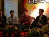 一个普通话说的不太流利的中国香港学者对在座的所有老总们提出了一个问题,"你们都号称要做中国的迪斯尼,但是在目前对未来的计划中并没有明确的在别的娱乐行业的发展,还只停留在游戏圈内"。丁磊先生回答了这个问题:"迪斯尼的历史超过65年,而我们的游戏产业才只有几年,所以在短期内我们做不到,我们只想把中国的游戏做到世界最强,让Made in China的游戏在全世界都能看到。"接下来寇司对这个问题进行了更详细的阐述,让这位中国香港学者得到十分信服的答案。 接下来是一个敏感的“纪录在案”的问题,各个公司的在线人数是多少。林欣禾先生说上一季收费前的《天堂II》的在线人数是12万;而《剑侠情缘》在中国**的测试时的在线人数为4万2千5百人;九城因为刚上市,所以只说了一个大概的数字《奇迹》大约10多万;杨京先生说《传奇3》最高在线人数为33万,《传奇3G》在线人数为18万左右;丁磊先生说最高同时在线《大话西游II》35万,《梦幻西游》44.4万;雷军先生说《剑侠情缘》在线人数一直排在全国第六位,《封神榜》在线人数不到20万;盛大的游戏《泡泡堂》最高在线人数70万,《冒险岛》在线人数30万,《边锋》在线人数30万,两款《传奇》游戏加起来在线人数不到100万;最后寇司估计全国约有2632万游戏玩家,比去年增长幅度为22%。