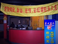 昨晚6时,网游免费包机活动的第二场大戏准时在上海指定网吧上演了。灯火辉煌的网吧里依旧是人头涌动,“我要报名、先给我报名。”听到工作人员说冲级活动报名开始后,早已守侯在现场的玩家们立刻沸腾起来,争先恐后地涌向工作人员要求报名参加冲级比赛。