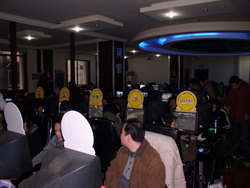 大雪纷纷扬扬铺天盖地地飘降在南京上空,在“免费飓风”活动进行的第二天,南京玩家的热情丝毫没有被大雪的普降所抵挡。晚上六点,南京各指定网吧来参加活动的玩家陆陆续续地相继到来聚集在一起,争相报名参加活动。当现场工作人员将手中有限的帐号分发给提前报名的玩家后,一些晚来的玩家仍然不愿放过机会,一遍一遍地询问工作人员还能否参加活动。我们的工作人员耐心地为各位玩家解释,因为该次网吧包机活动所包的电脑数量有限,因此只有希望各位没能参加今晚活动的玩家明天能继续来参加活动,到时我们将优先考虑这一部分的玩家。