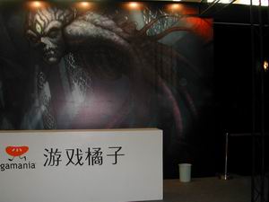 游戏橘子的整个展台以黑色调为主,在众多以明亮色彩为主色调的展台里显得独树一帜。但在这里黑色让人丝毫感觉不到传统的冰冷与肃穆,玩家们的人头攒动与此相映成趣,带给了它新的注解。冷峻的黑色是《EQ2》对外宣传的主色调,代表的是游戏本身的严谨、神秘、以及富有无限张力的想象空间,让人禁不住多了一丝要一探究竟的好奇心。展位前的人潮涌动更为这抹神秘增添了更多的诱惑力。