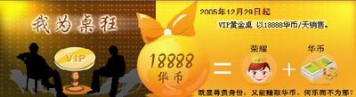 参加此活动首先必须具备精明的头脑,换句话说也就是要会算帐,以18888华币/天买进“VIP黄金桌”然后发挥你最大的魅力动员游戏的其他玩家在你的桌子上进行游戏,在此桌消耗的游戏币的所有税收均由你所得。当中的利润可想而知!!当然玩家玩的越大你的利润就越可观!!(购买的越早桌号就越靠前)!