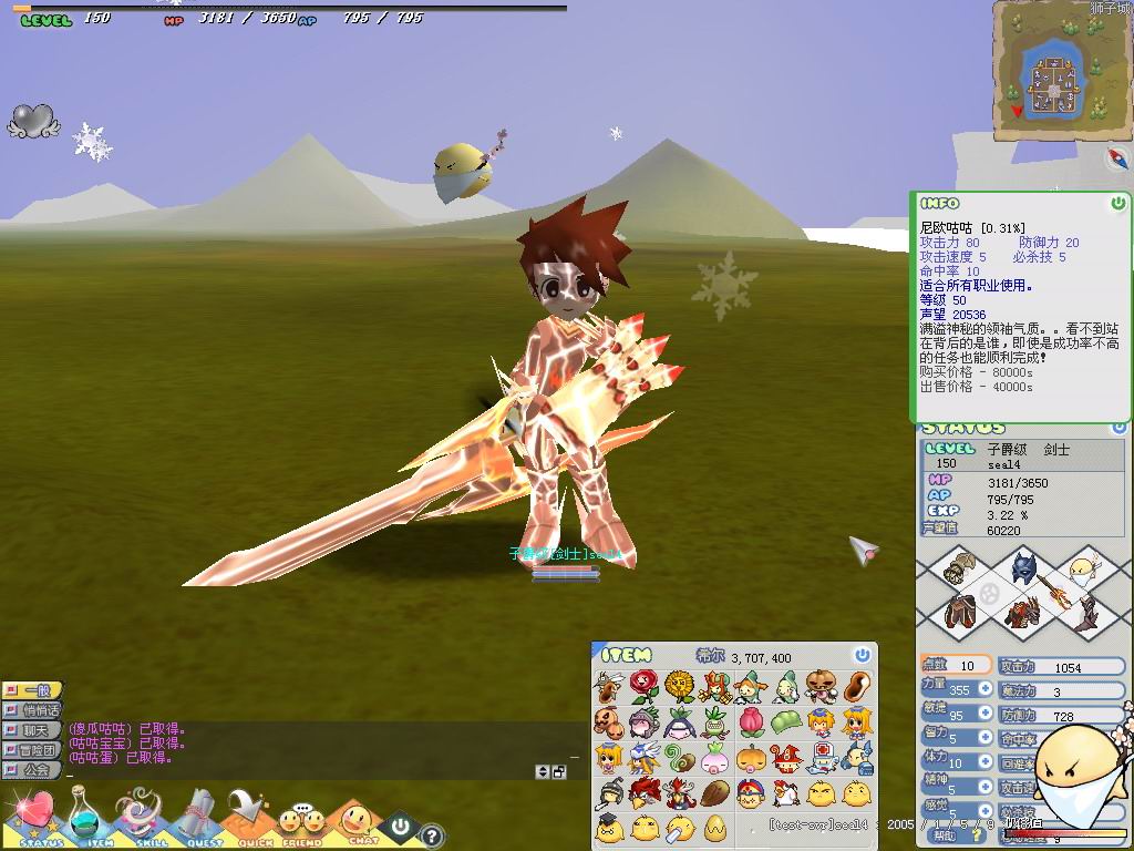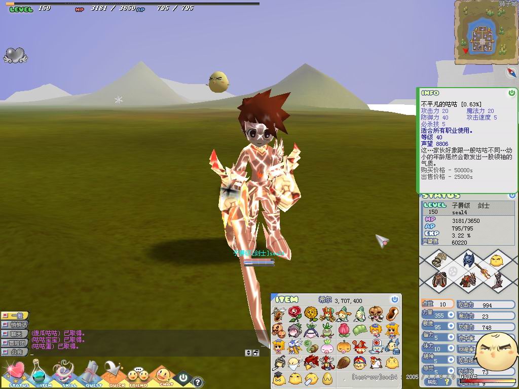 希望OL中的一大特色,宠物系统分为种子系列、咕咕系列、飞禽系列、天上系列,而在每个系列中均有5个阶段可以进化,更有数十种5级宠物最终陪伴玩家在希望OL中游戏。