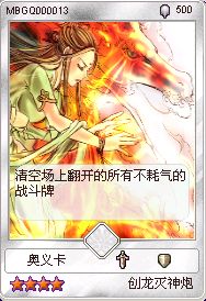 “武侠牌”――《互动武侠》网络增值服务中大陆首款中国人自己的卡牌对战游戏!类似于著名卡牌对战游戏《万智牌》、《游戏王》,题材取自于**真善美出版社旗下22位武侠名家百余部武侠著作!大胆挑战传统网游(MMORPG),2005年揭开中国游戏历史新篇章!