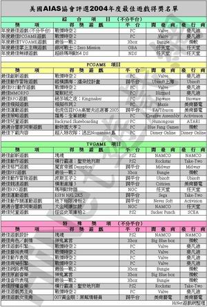 在这次第八届的AIAS最佳游戏得奖名单中,以PC游戏《半条命2》最为风光,入围十项便得奖九项,成绩相当惊人。此外《魔兽世界》击败《英雄城市》、《最终幻想XI》等对手获得了最佳网络游戏奖。