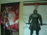 带着这个疑惑走出电梯,首先映入眼帘的是两幅巨幅宣传画,左边那个是《复活》中的“彩欣”,一个有着坎坷经历的女孩,右边那个就是《傲世Online》中的“武将”,女的娇柔,男的阳刚…
