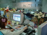 这是产品中心的漂亮mm,产品中心现在主要负责《天骄II》的地面推广,目前在全国十三个城市建立了办事处,全在外地办公,留守北京的大概有十几名员工。