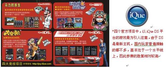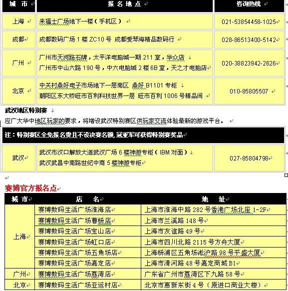 关于网上报名及比赛的更多详情,网友们可到CGT活动网站 点击进入看一看,这里再重列一下官方的报名点,玩家可根据自己的实际情况选择网上或实地报名,小编在此祝选手们赢得高额奖金、捧回梦寐以求的iQue DS!