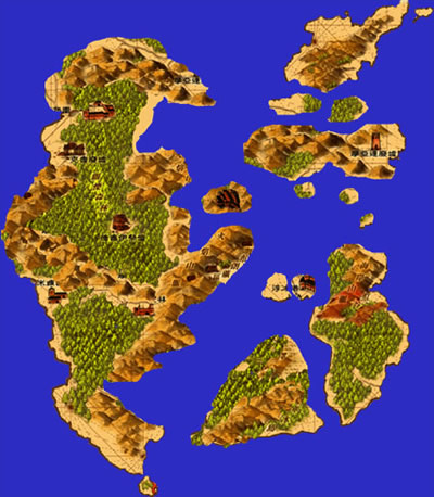 《万王之王2》的地形、建筑、城市格局均按照中世纪欧洲流行风格设计,大部分被草类植被覆盖。以浮冰港为中心,东北方为神秘东角废墟、伏尔加岛,北方则是最美丽的艾德利亚镇,西方是巴布郎港和北乌鲁台地,而南方紧挨着汪尔达森林和利诺草原。玩家在游戏中行走可以惊喜地体验到如同漫游在真实世界的新奇感觉。