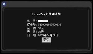 第三步:当信息提交后,您可以看见以下“确认单”,请核对您的帐号以及所支付的金额后,点击“提交”按钮发送。