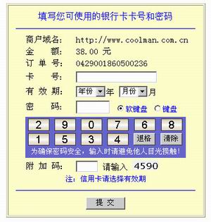 第二步:登陆支付页面,您将会看到如下信息栏,填写完毕后点击“提交”按钮发送。