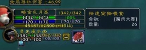 除了和其他插件一样的状态显示、时钟、魔法增益、一键换装等功能标志外,“魔兽精灵”还为猎人职业提供了一个宠物喂食窗口。别小看了这个小小的喂食窗口,却让猎人职业的玩家倍感方便。以前宠物饿了总要打开包裹拖曳食物去喂宠物,现在只要把食物图标拖到喂食窗口,便可随时给宠物喂食,免却了翻包袱的麻烦。这个小小的界面更改,正是“魔兽精灵”开发人员细心体贴的反映。