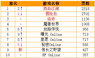 《 冒险岛》被《 热血江湖》取代了第一的位置。