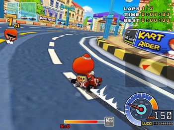 而同样是以《泡泡堂》人物为游戏人物的《泡泡卡丁车》是赛车类休闲游戏。游戏采用了最新的3D技术,可爱的人物画面,简单的操作很容易使玩家接受。据统计,《泡泡卡丁车》中20岁以上的玩家人群达到了40%,30岁以上的达到10%。从去年6月公测以来,《泡泡卡丁车》以其独特的魅力赢得了玩家们的喜爱,创造了韩国国内网游一个神话:最高同时在线22万人,会员人数达到了1200万,成为名副其实的国民网游。