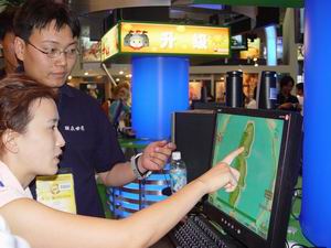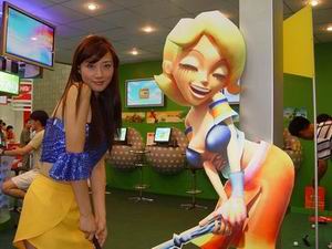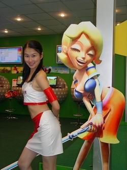 位于二号展馆的联众世界携众多精彩游戏,一经亮相,便吸引了各界参展人士参观体验。 《GF大冒险》这款GOLF游戏画面精美,操作方便,人物可爱,引来了不少帅哥美女呢!现场的沙滩,躺椅,椰子树,比基尼美女,为您营造了一个完全高尔夫现场!和沙滩美女帅哥合影可免费现场打印出来哦!(图二)