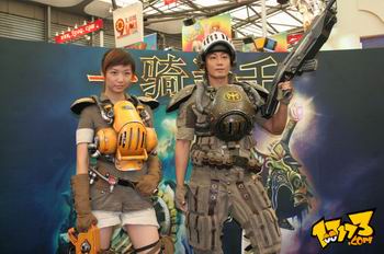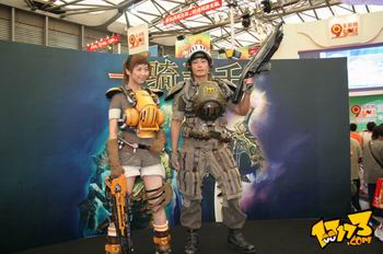 以下是Webzen新作《一骑当千》展台的一幕,这两位钢铁战士应该是来自webzen的另一款FPS网游《HUXLEY》中的角色Cosplay。《一骑当千》是三国题材的网游,这两位是客串客串哦。