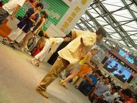 久游网作为时尚网游的代表之一,将游戏与时尚完美的结合,在2005年最热闹的7月暑期热点――ChinaJoy上,久游网为所有到场玩家准备了精彩活动及游戏试玩,让你充分与游戏互动,体验最新、最酷的游戏。 经过第一天的“原创民族网游《猛将》第一次内测发布会” 以及连续两天火爆的“O2Jam奥林匹克冠军赛中国赛区总决赛”之后,官方将全力与玩家进行交流,现场推出了一系列精彩活动,与玩家互动,并给予获胜者精美周边产品。 跳长绳、金鸡独立、掰手腕等有趣的活动一一奉上,现场气氛始终火爆万分。玩家纷纷热情加入,争相上台,期间更有国外友人上台参与,让久游网全体工作人员也热情高涨。 为了与玩家更好的交流互动,久游网漂亮的女主持更是主动参与,和上台的美眉玩家友情比拼。而礼仪小姐也不甘寂寞,与玩家一起游戏起来,科隆抱枕等精美可爱的周边产品被陆续送出。 看到玩家开心的笑颜,久游网深感欣慰,为了让玩家感受到更多网游时尚的魅力,《劲舞团》露出端倪,展台大屏幕上播放着这款时尚音乐网游的片段。劲爆的音乐、绚丽而富有动感的同步舞使众多参观者驻留脚步。在这美妙的气氛环绕下,压轴大戏登场啦!由久游网特邀的3位街舞高手出现在展台之上,为大家表演了一段超级劲爆的HIP-HOP,尖叫、欢呼不绝入耳。 之后,更有现场舞蹈教学,让热心好动的帅哥靓妹学习较量,展现了一股玩家热舞风潮。 下午3点,在众多参观者的关注中,第三届ChinaJoy――久游网会展正式结束。礼仪小姐的温馨笑容、展台活动的精彩比拼以及游戏的特别展示,久游网的魅力尽现于此。 明年,久游网将为您带来更新、更全、更酷的游戏展示,敬请期待上海第四届中国国际数码互动娱乐产品及技术应用展览会!