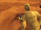 其实,陆上的“丝绸之路”为人类留下了更加珍贵而丰富的文化遗产,其中雕像、画卷、壁画、佛经数不胜数。《丝路传说》自然将这些名胜古迹一一再现。在长安有金鳞玉角的神龙喷泉,脚踏莲花佛光普照的巨石佛像。在秦始皇陵中更有高耸入云的护陵石雕,这些石雕有文有武,似乎暗示着秦始皇欲在地下继续称王的雄心壮志。在敦煌白马寺,三座巨佛石雕依山而立,显出无比威严,人们在佛像面前显得如此渺小。在敦煌野外,屹立于山壁之上埋没于黄沙之间的雕像随处可见,不禁让人惊叹古人的鬼斧神工,更让人为这段逝去的辉煌盛事而感伤。