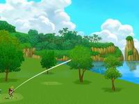 曲洋:《高尔夫大冒险》简称《GF大冒险》,这是一款联众自己研发的高尔夫题材的网络游戏,它在可玩性上,比如说,逆行、风速、击球力量、准确度对球的影响等都是比较真实的,模拟了高尔夫球真实的感觉,但这和比较专业的高尔夫游戏又是有不同的地方,毕竟这是一款休闲类的游戏,首先它在操作上比较简便,容易上手,然后它在球道上不是都像专业游戏采用的O型赛那种球道啊,而是采用很多虚拟的具有娱乐性的,比如说有在太空打球,还有在沙漠、游乐场进行比赛。