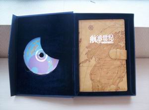 《航海世纪》冷热两用迷你车载限量冰箱,尺寸213×275×343(mm),可放置8罐355ml易拉罐。制冷可低于正常室温20度,制热可至65度。采用绿色环保的冷热系统,不含任何制冷剂,可在汽车和家庭使用。 《航海世纪》3D光电注油鼠标,注油部分有一艘小船在蔚蓝色的海洋中遨游。 《航海世纪》CD盒,印有《航海世纪》图样的CD盒,可放8张光盘的精美简装CD盒。 《航海世纪》笔记本[简装],32开,采用128铜版纸全彩印刷。 《航海世纪》同名系列丛书,由6名知名网络作家共同完成,全书72万字6本书分开可独立成册,合起来则描绘了地理大发现时期的波澜壮阔的故事,随书还有附赠珍藏限量藏书票。