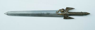 剑的来历要追溯到轩辕黄帝时代。据《黄帝本纪》记载:“帝采首山之铜铸剑,以天文古字铭之”;又有“昔葛天卢之山发而出金,蚩尤受而制之,以为剑铠”之说。该记载表明,黄帝与蚩尤的时代便已经有了剑。黄帝于公元前2704年建庙,国号有熊氏,当时尚系初入青铜器时期,但由此推知,剑之出世极为古远,历史悠久,故后人称之“短兵之��”,确可当之无愧。