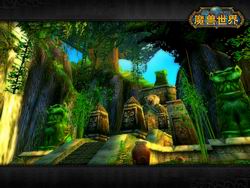 她位于热带丛林中的荆棘谷东北部,四面环山,中间仅有湖水与外界相通,流淌出一条条秀美的瀑布……早在beta版本时起,这里的入口就一直被巨大的燃烧军团所把守,还架设着镌刻有 暴雪娱乐 建筑工程队字样的路障。经过了将近一年的悉心“建设”,如今,美丽的祖尔格拉布终于向我们揭开了她神秘的面纱……