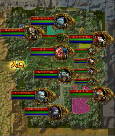 为了**血神哈卡,各个巨魔部族联合起来,派出了一支由高阶祭司组成的小队深入这座古老的城市。这些部族就是我们十分熟悉的:邪枝、劈颅、血顶、枯木和沙怒。