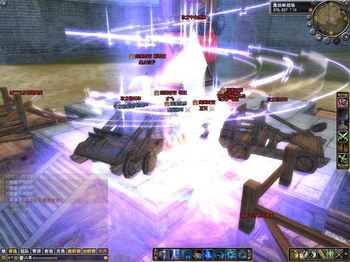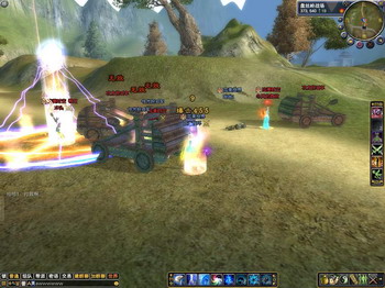 挑战其他人所占领的领土成功后,双方人员将进入领土战战场,双方即可以开始进行对攻。此时攻防双方帮会成员的名字颜色会发生变化,以示区分。守方名字显示为蓝色,而攻方显示为红色