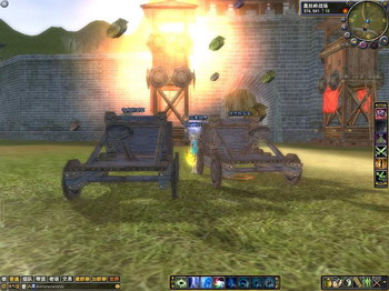 攻守双方都可在战场内的相关NPC处购买投石车召唤券轴,用以召唤投石车协助战斗。特别是攻方,没有投石车协助进行攻城,几乎没有任何胜算。投石车召唤券轴价格非常低廉,但每方最多只能召唤三架投石车。