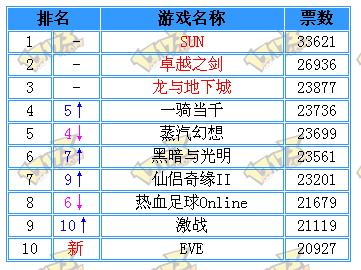 - (2008-08-25) 大陆新游期待榜TOP20有奖投票活动恢复